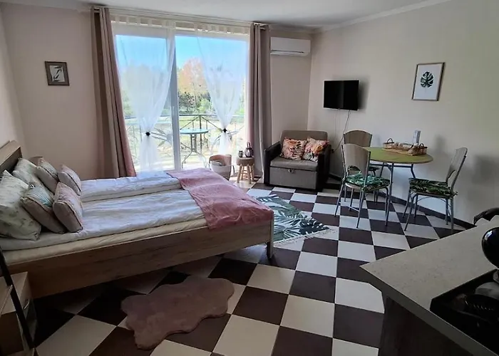 The 1-room Cozy Studio In Hacienda By Flat Mаnager Sozopol is located approximately 25 minutes' walk from Amphitheatre Apoloniya and offers Wi-Fi for either business or leisure. This 35 m² apartment is 2.7 km from the Sozopol Old Town and fairly close to the Gold Wheelhouse Beach.